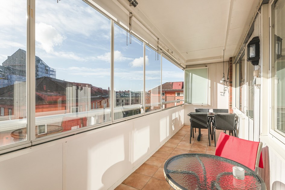 Stor härlig inglasad balkong i bästa söderläge med sol hela dagen