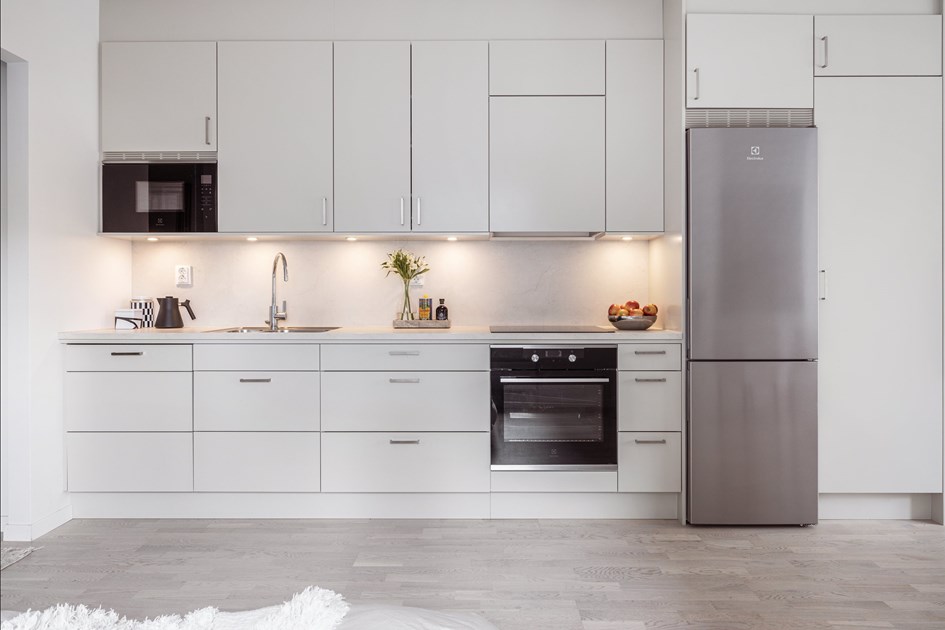 Välkommen till en välplanerad och fin lägenhet med närhet till havet och naturen. Stilrent modernt kök från Vedum som erbjuder mycket förvaring i skåp och lådor. Vitvaror från Electrolux så som kyl/frys, inbyggd ugn med induktionshäll ovanför, inbyggd micro i arbetshöjd och integrerad diskmaskin. Det stora allrummet har fönster i två väderstreck och i den ena delen finns en naturlig plats för vardagsrumsdel med plats för soffa, soffbord och TV. I den andra delen av allrummet vid fönster och under de smart placerade väggskåpen finns plats för säng med sängbord. Bostadens badrum har skön golvvärme, dusch med vikbara duschväggar, handfat med kommod under samt spegelskåp med belysning ovanför. Den kombinerade tvättmaskinen/torktumlaren har en praktisk bänkskiva ovanpå och ett väggskåp till förvaring ovanför. I hallen finns en skjutdörrsgarderob med förvaringgssytem. Utöver bostadens många skåp, lådor och skjutdörrsgarderob finns ett lägenhetsförråd i källaren.