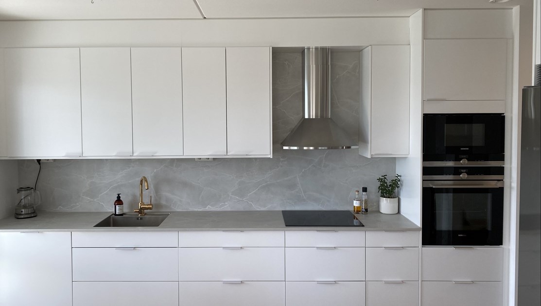 Ljus och välplanerad gavellägenhet med inglasad balkong i bästa solläge. Utsikten är hänförande både på dagen och kvällen och när mörkret lägger sig syns stadens ljus i fjärran. Den öppna planlösningen mellan vardagsrum och kök skapar sociala ytor och de många fönstren ger en luftig atmosfär. Det fina moderna köket har uppdaterats med nya luckor och "Edge-pull handgrepp", ny stilfull bänkskiva med matchande stänkskydd ovan samt blandare i roséguld från Tapwell, Integrerad diskmaskin bakom lucka, dubbel kyl- och frys som har automatisk avfrostningsfunktion, inbyggd micro och inbyggd ugn med avancerad självrengöringsfunktion, induktionshäll i högre kvalitet med fläktkåpa i rostfritt ovanför. Matplats för stora sällskap vid fönster och utgången till den inglasade balkongen där du njuter av utsikten över grönskan och stadens ljus. Balkongens stora glaspartier kan skjutas åt sidorna eller ställas i vädringsläge och för dig som vill använda balkongen stora delar av året finns eluttag så du kan installera värme.