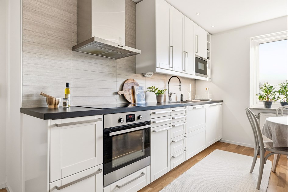 Välkommen till en välplanerad 3:a med balkong och utsikt över takåsarna där stadens ljus lyser upp kvällen i fjärran. Det moderna välutrustade köket har mycket plats till förvaring i lådor och skåp. Integrerad kyl/frys och diskmaskin, induktionshäll med ugn och inbyggd mikro samt kaffemaskin i arbetshöjd. Vid fönstret finns en matplats för 4-6 personer. Vardagsrummet är rymligt med plats för soffa, soffbord och TV-möbel samt matsalsbord för den som önskar. Två sovrum i bra storlek varav det största har klädkammare med skjutdörrar. Det helkaklade badrummet med dusch och golvvärme har tvättmaskin och vädringsfönster som släpper in dagsljuset. I hallen som har klinkergolv med golvvärme finns plats för avhängning i två garderober. Utöver bostadens garderober och klädkammare finns ett förråd i entréplan som tillhör lägenheten. Inre fond med 18 955 kr medföljer lägenheten att nyttjas av köparen i bostaden.