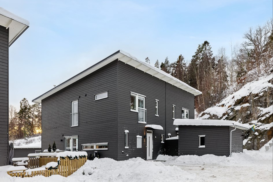 Välkommen till ett av de större parhusen i området med sju rum varav fem sovrum. Här är det lätt att trivas för hela familjen i en modern bostad byggd 2022. På husets framsida finns ett förråd samt plats för parkering för två bilar. Stig in i en ljus hall med gott om plats för avhängning i skjutdörrsgarderob. Till höger finns badrum med dusch och wc samt tvättavdelning med tvättmaskin och torktumlare. Här i husets entréplan är det ljust och luftigt med många fönster och utgång till både uteplats och en stor balkong i bästa söderläge. Köket är välplanerat med stor kyl och frys, diskmaskin, inbyggd micro och ugn samt induktionshäll med stor fläkt ovanför. Köket skärmas delvis av med en bardisk till det rymliga vardagsrummet som erbjuder plats för både matsalsbord och soffgrupp. En trappa upp finns fyra sovrum samt ett badrum med badkar. I husets nedervåning finns ett allrum och ett sovrum.