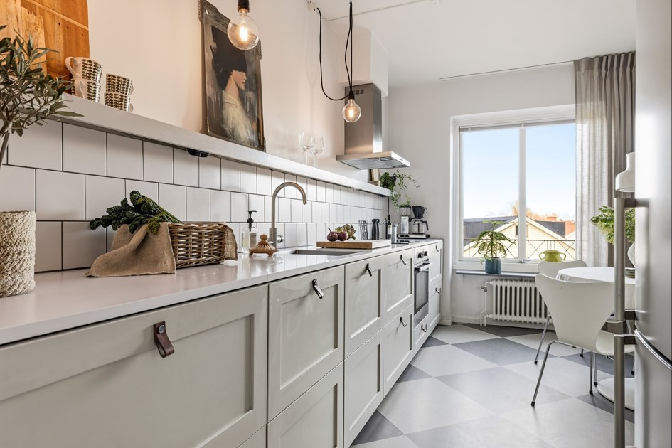 Välkommen till en ljus fin 3:a i centrala Mölndal. Det hemtrevliga köket har många lådor till förvaring och integrerad diskmaskin bakom lucka. Kyl/frys i rostfritt, ugn och induktionshäll med fläkt ovanför. Ljus inbjudande matplats vid fönster. Bostadens vardagsrum har plats för både soffgrupp och matsalsbord och de stora fönstren och utgången till balkongen gör rummet ljust och luftigt. Den vackra fiskbensparketten och den varma väggfärgen skänker en härlig känsla av hemtrevnad. Från vardagsrummet kommer du ut på balkongen med plats för möbler och blommor. De två sovrummen är rymliga och har plats för dubbelsäng med sängbord. Helkaklat badrum med dusch, wc och tvättställ med spegelskåp ovanför. Utöver badrum med wc finns en separat gäst-wc. Lägenheten har två entrédörrar och kan därmed enkelt användas till generationsboende eller för den som önskar en inneboende. I den här fina bostaden är det lätt att trivas och bo i ett lugnt område nära service, kommunikationer och grönområden.